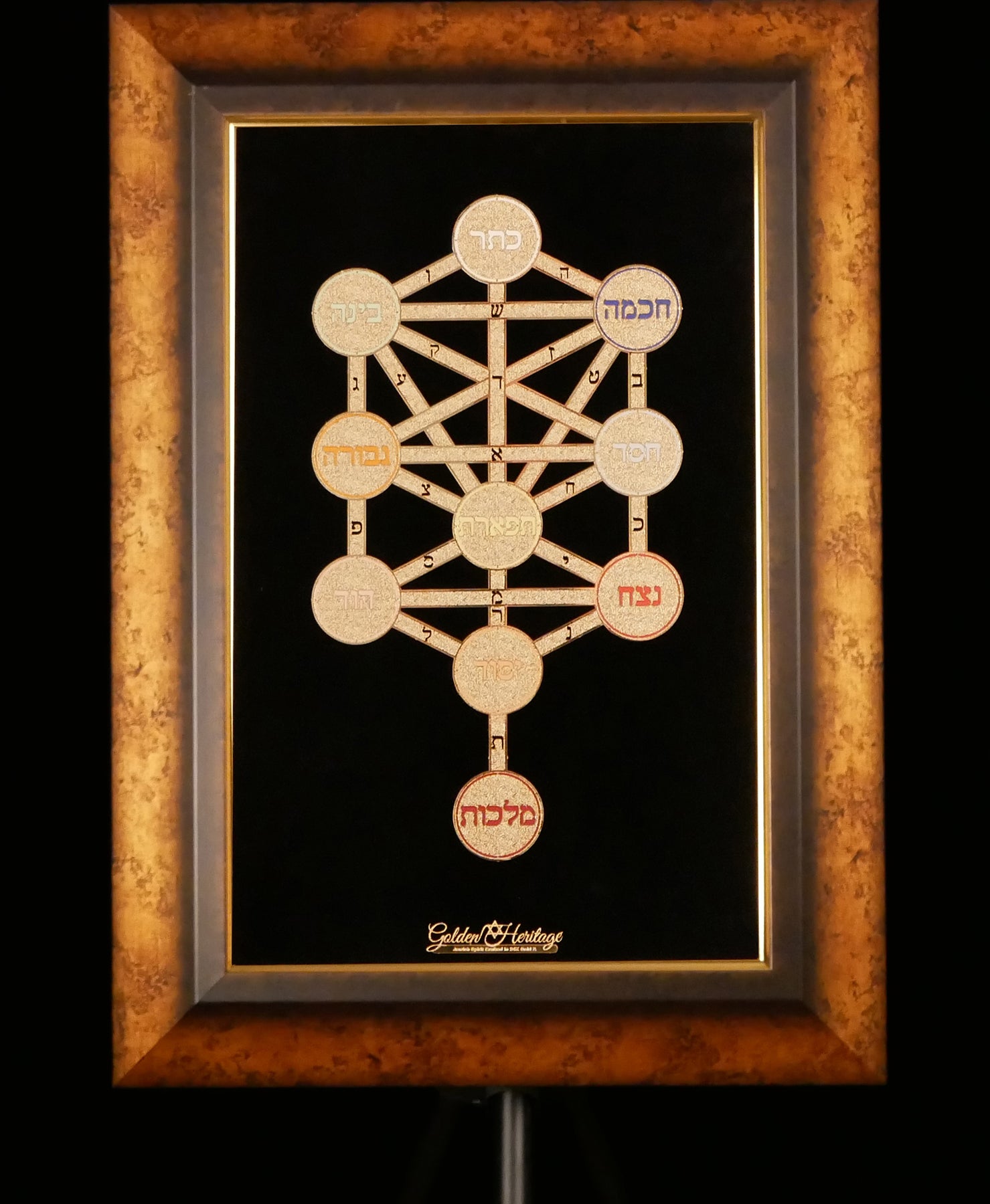 A sacred symbol of divine wisdom and creation, the Golden Kabbalah Sefirot captures the mystical structure of the universe as taught in ancient Jewish Kabbalah. This one-of-a-kind piece brings the Etz HaChayim — the Tree of Life — to life with 24K gold-plated precision and rich, symbolic color.