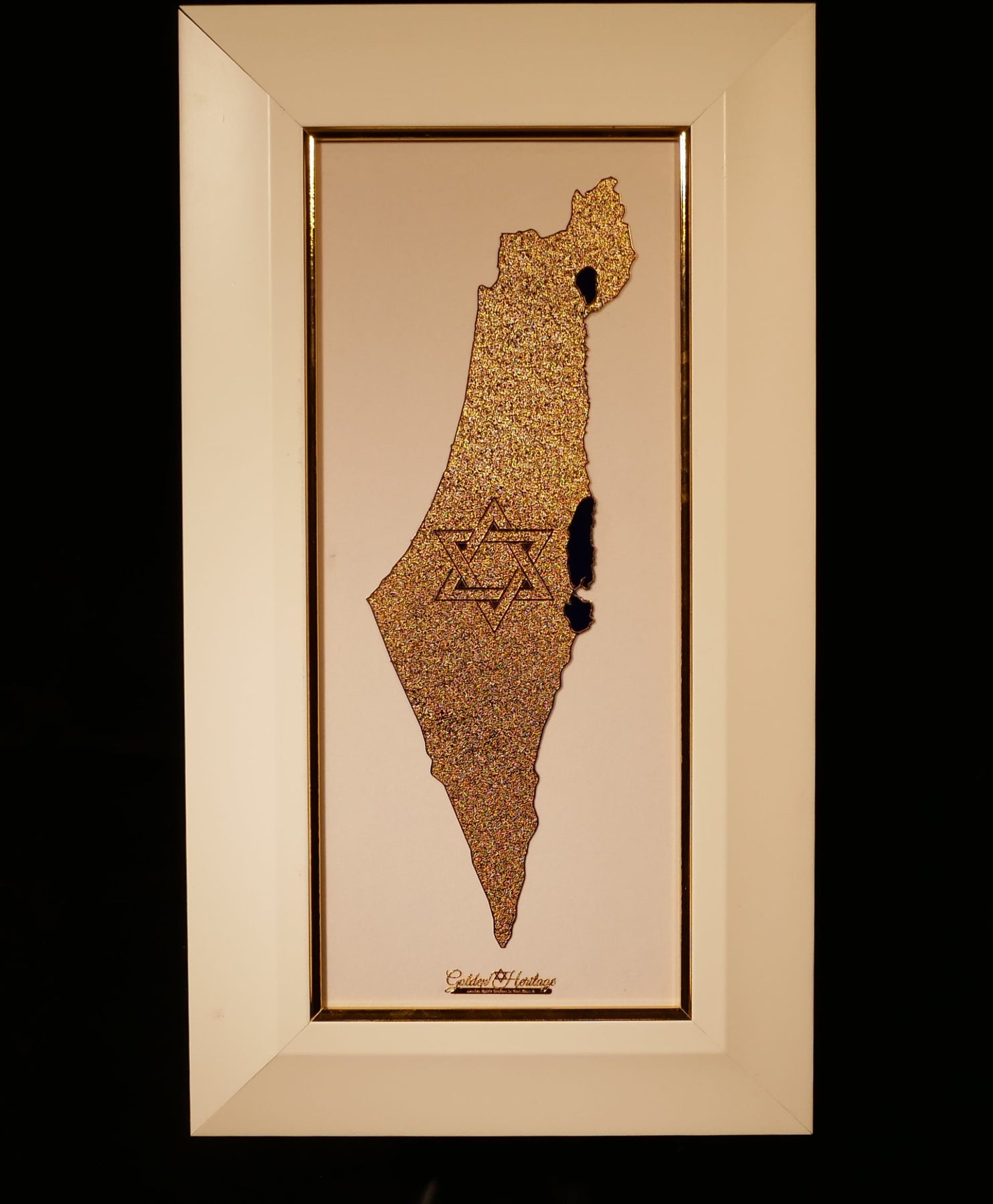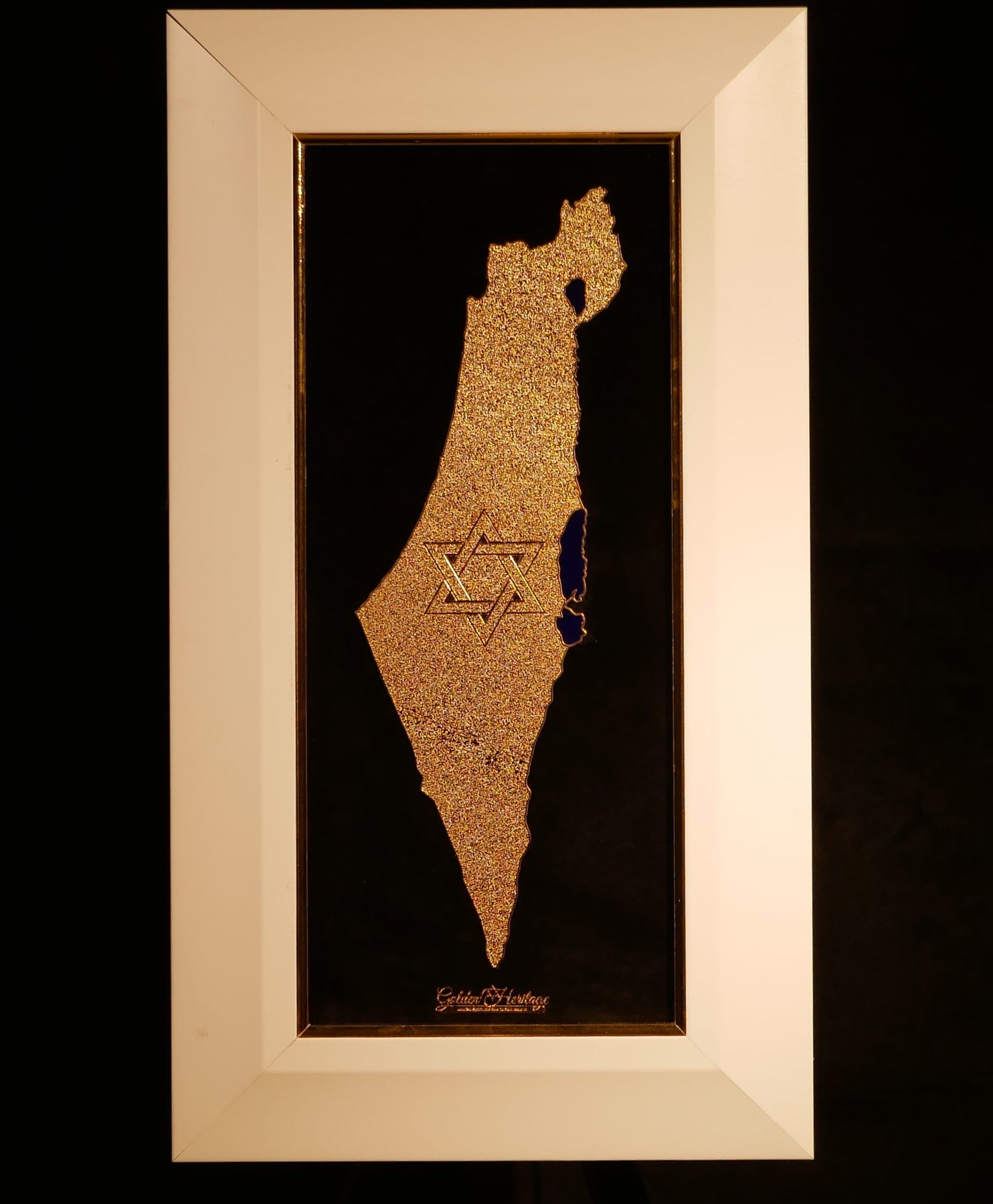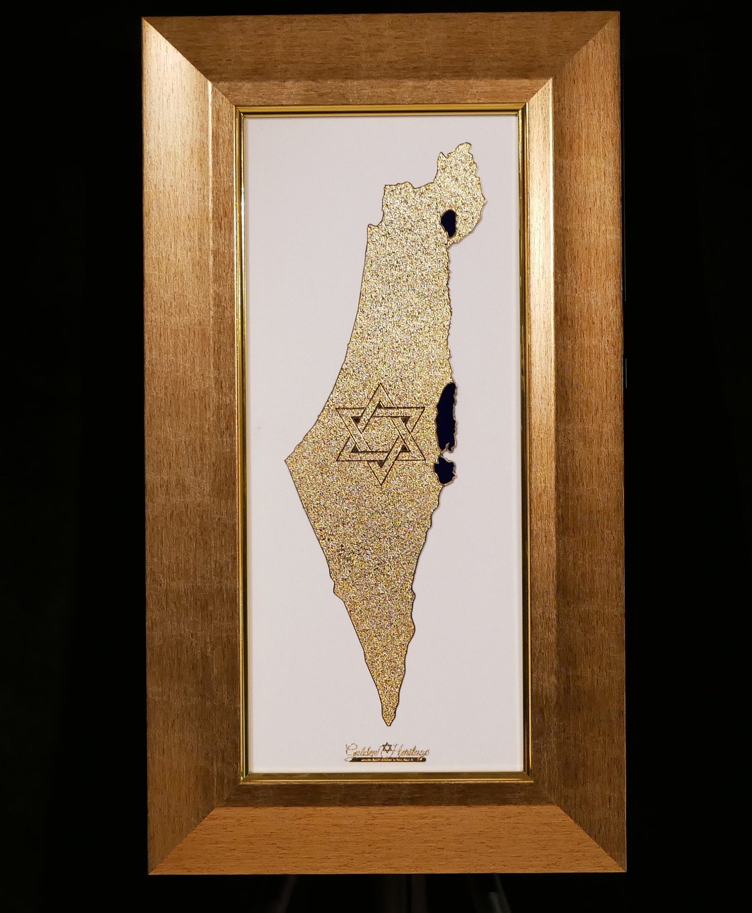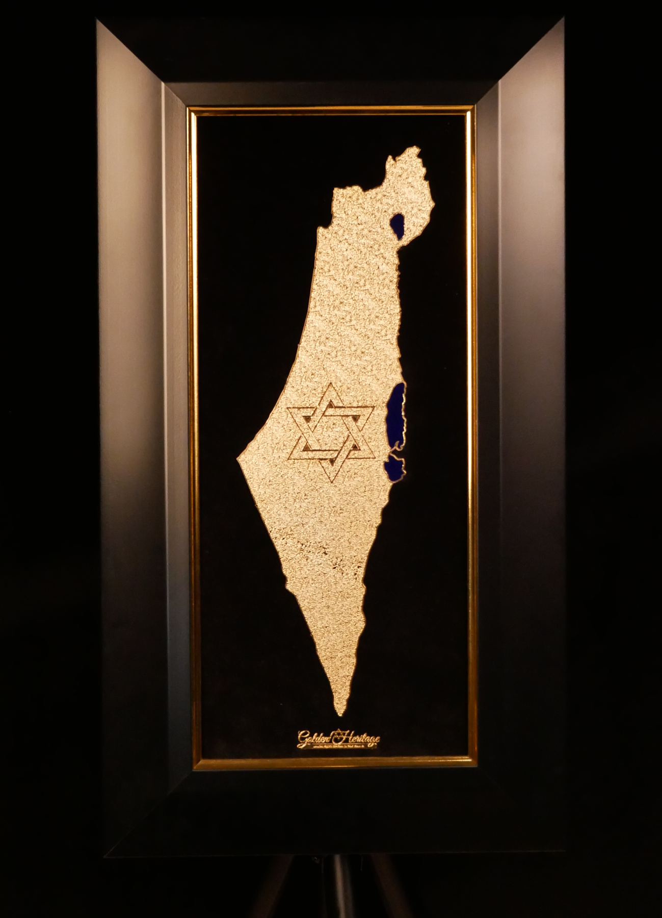 The Golden Map of Israel is not just art — it is heritage cast in gold. Crafted with precision in 24K gold plating, this first-of-its-kind creation transforms the sacred outline of the Land of Israel into a timeless masterpiece.